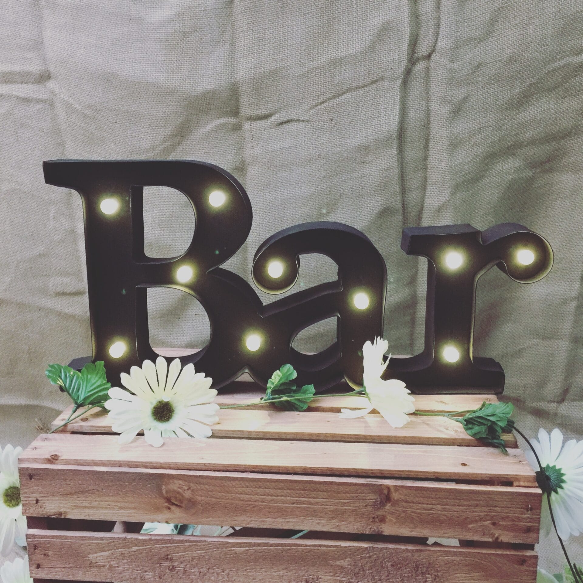 We doubt that your bar section will need any help in catching your guests attention, but if it does, our B-A-R Marquee Sign is the perfect solution! You do not have to worry about any naughty boys (or girls!) rearranging the letters to spell something else because it comes in one solid piece. It measures 11 inches in height and 19 inches in width.