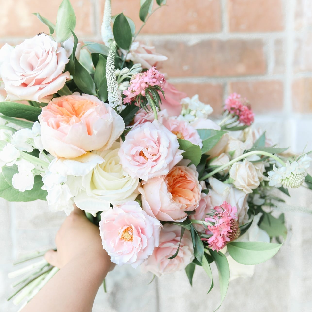 Wedding · Whimsical Peachy Pinks Fresh Bridal Bouquet