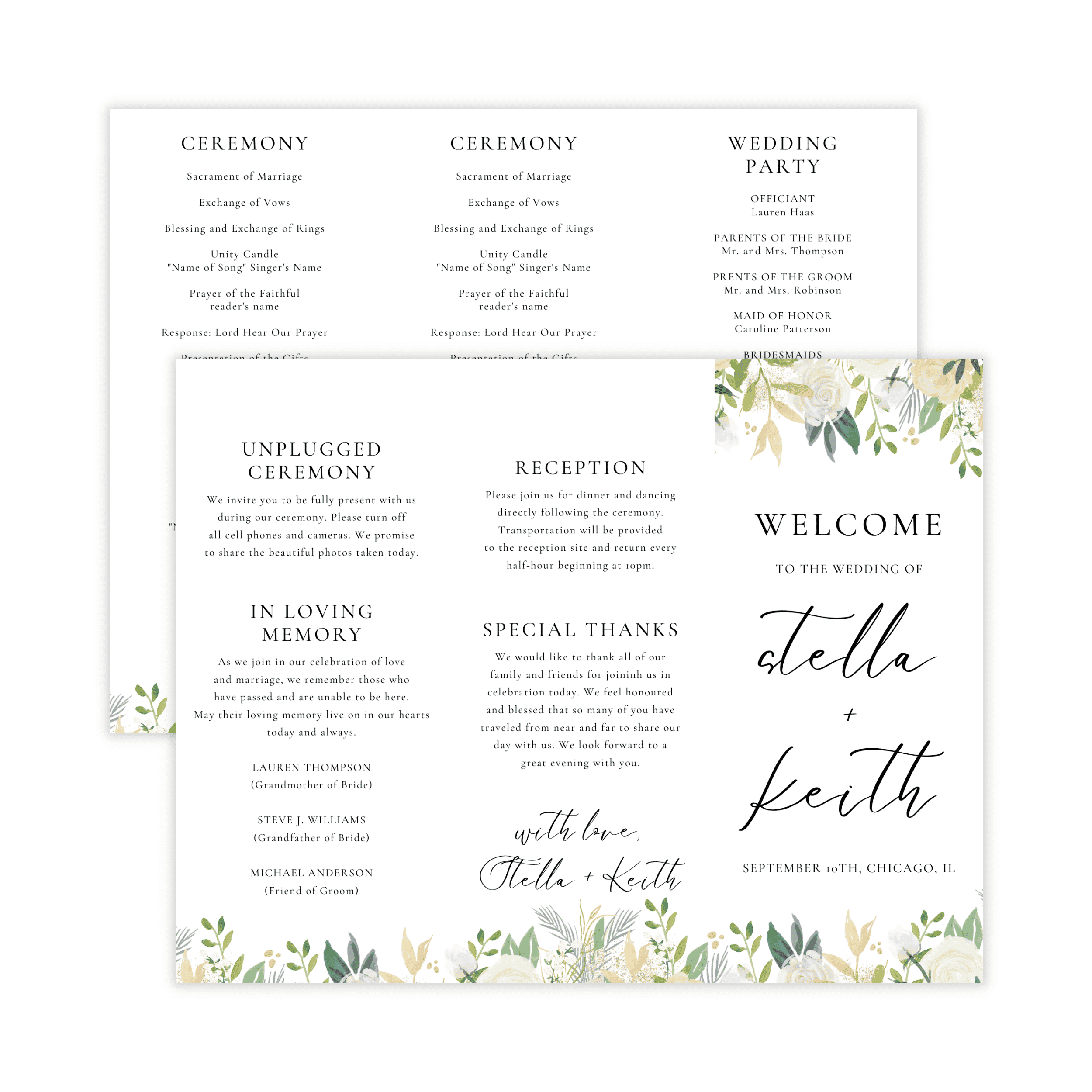 Classic Gold & Green Trifold Wedding Program