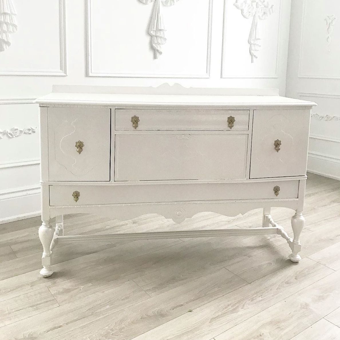 Ella Distressed White Vanity Server Table