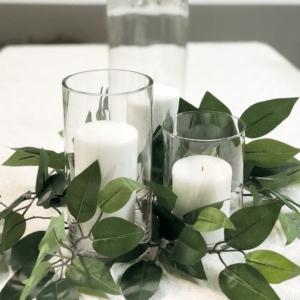 Pricing is per centerpiece set (3 candle holders with candles + greenery – you will have to set up the greenery if you’re picking up).
