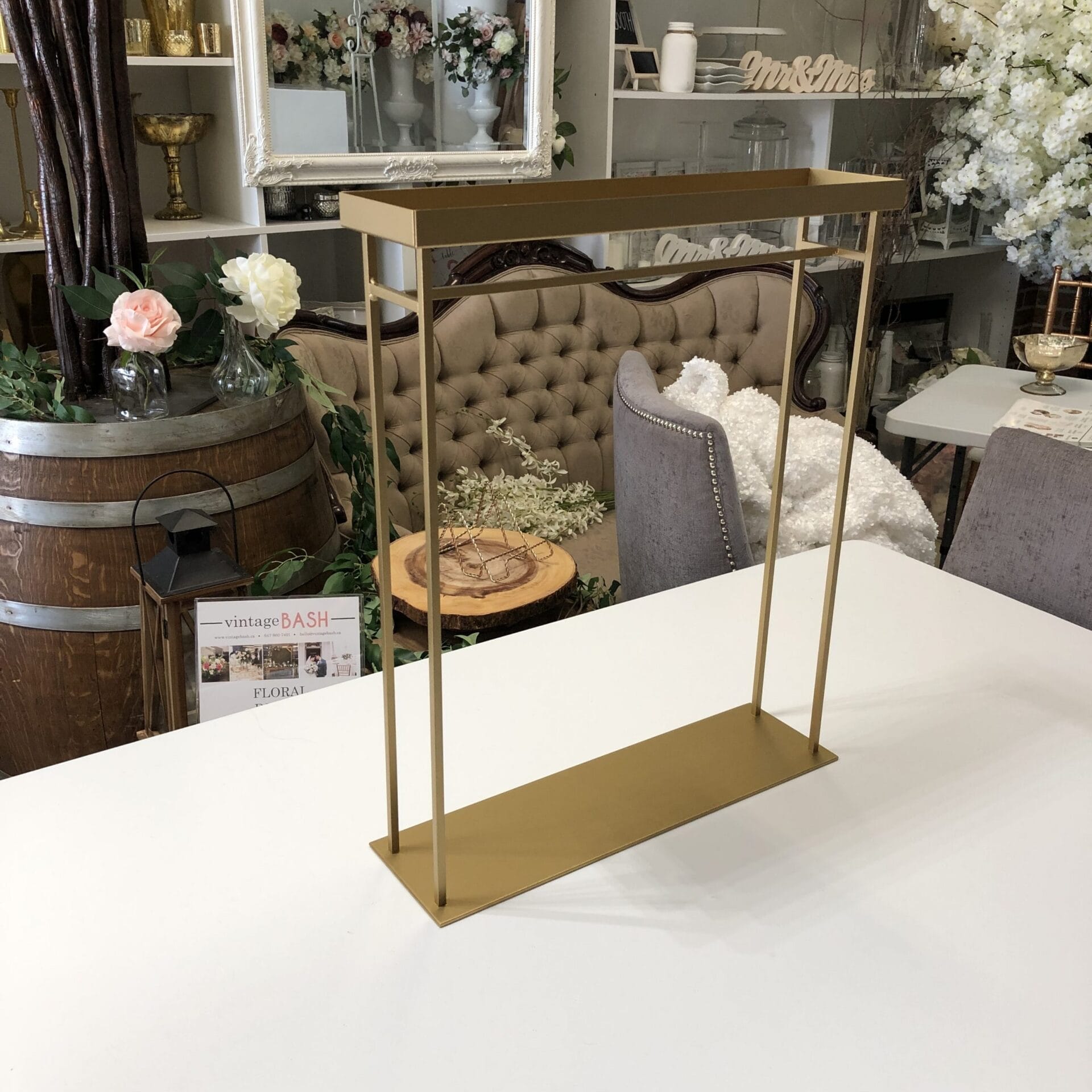 Need a floating floral arrangement for your event? The Andel Gold Biltmore Stand is right for you!