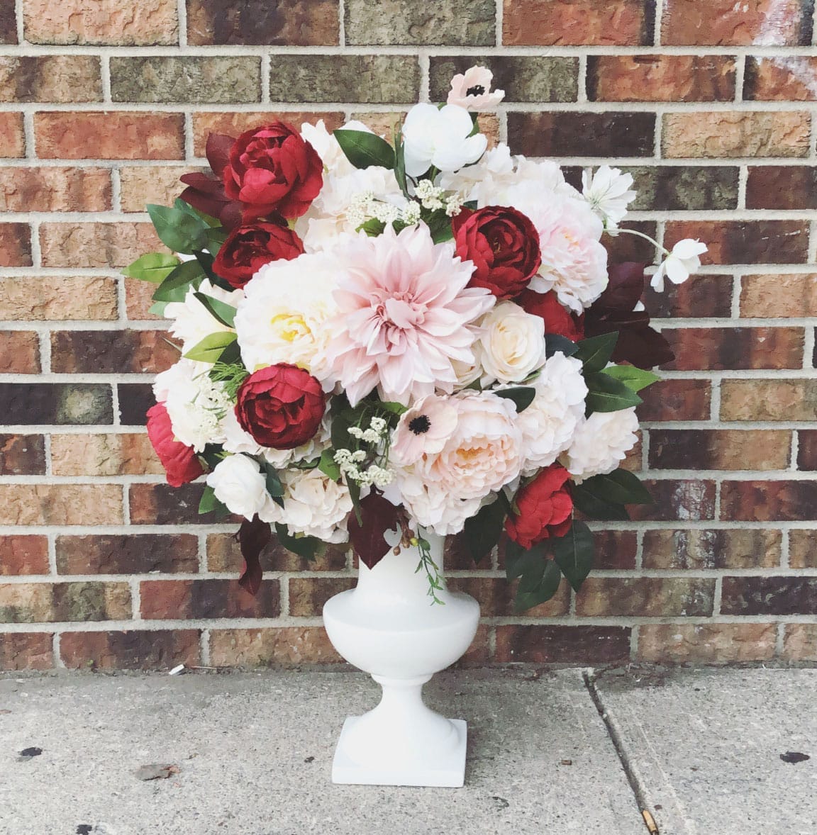 standard vase (17" high as seen in the photo), taller vase (24" high), standard vase with silk arrangement, taller vase with silk arrangement